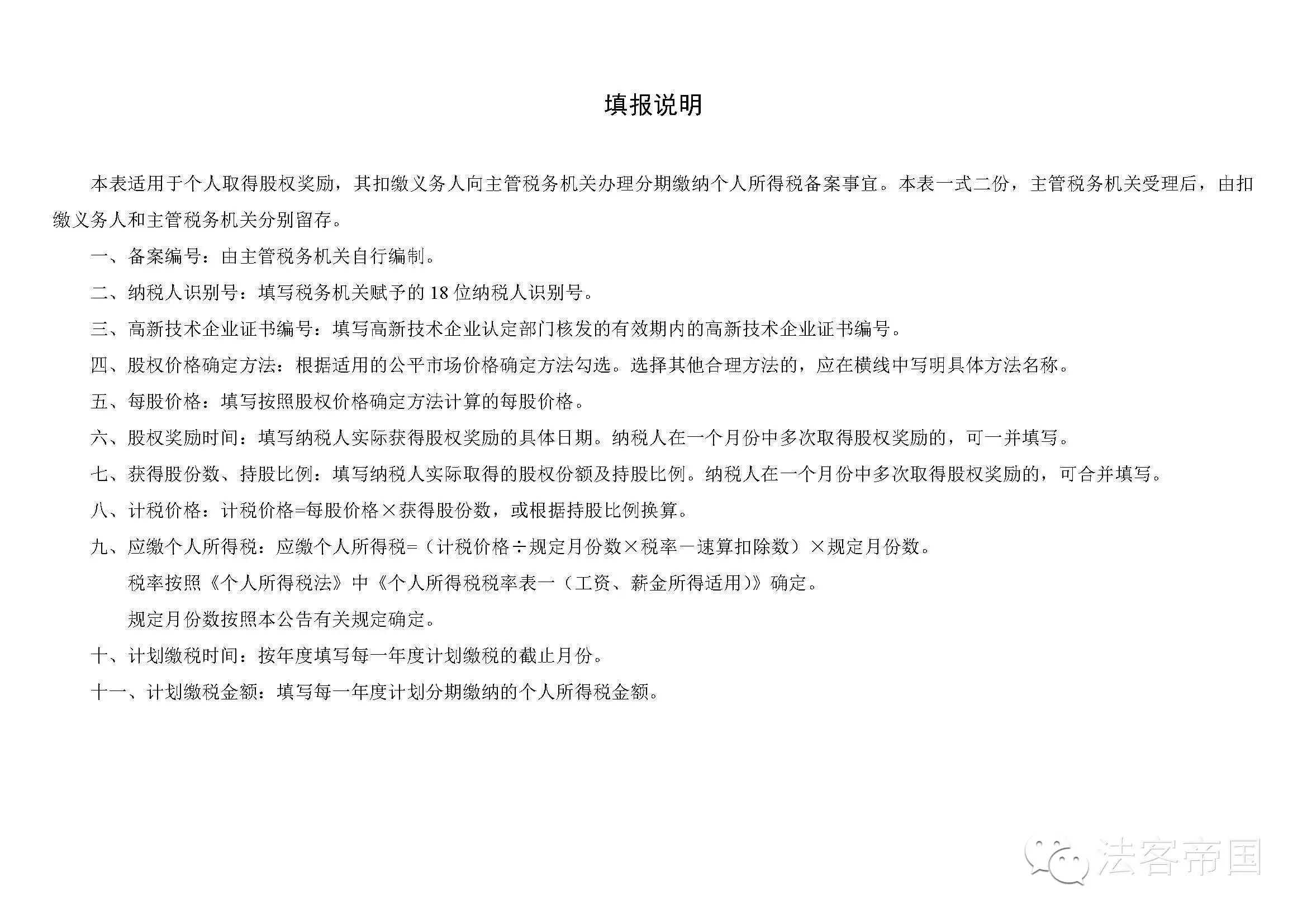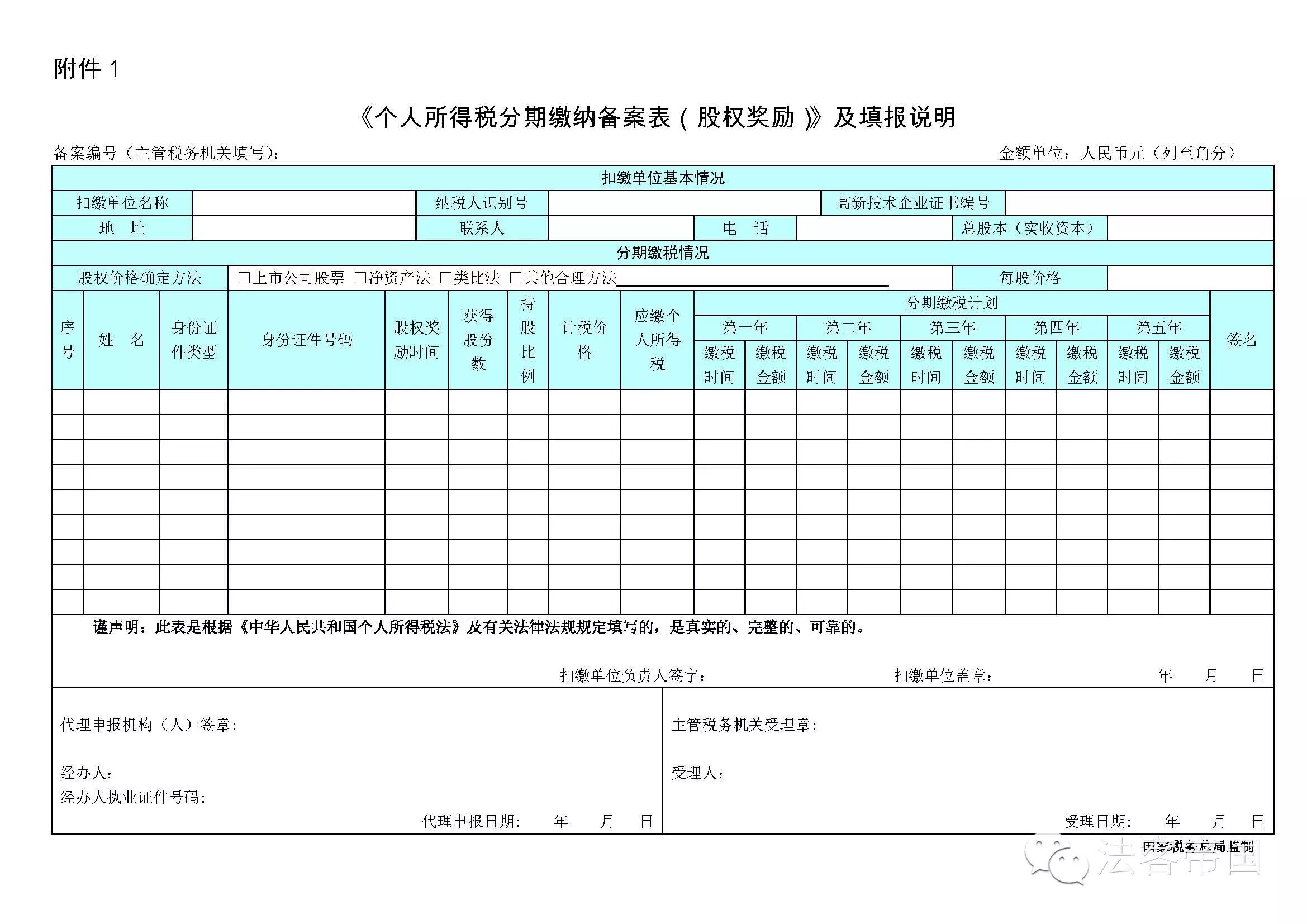附件1.《个人所得税分期缴纳备案表(股权奖励)》及填报说明
