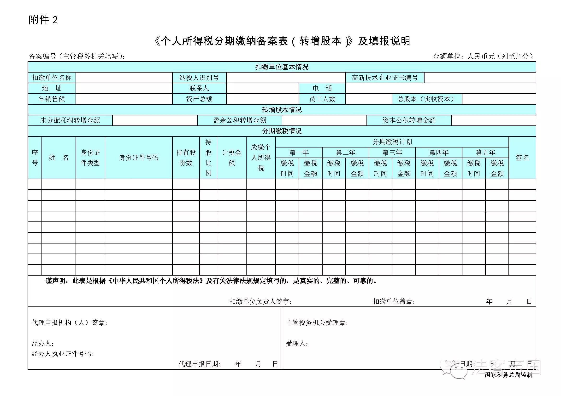 附件2.《个人所得税分期缴纳备案表(转增股本)》及填报说明